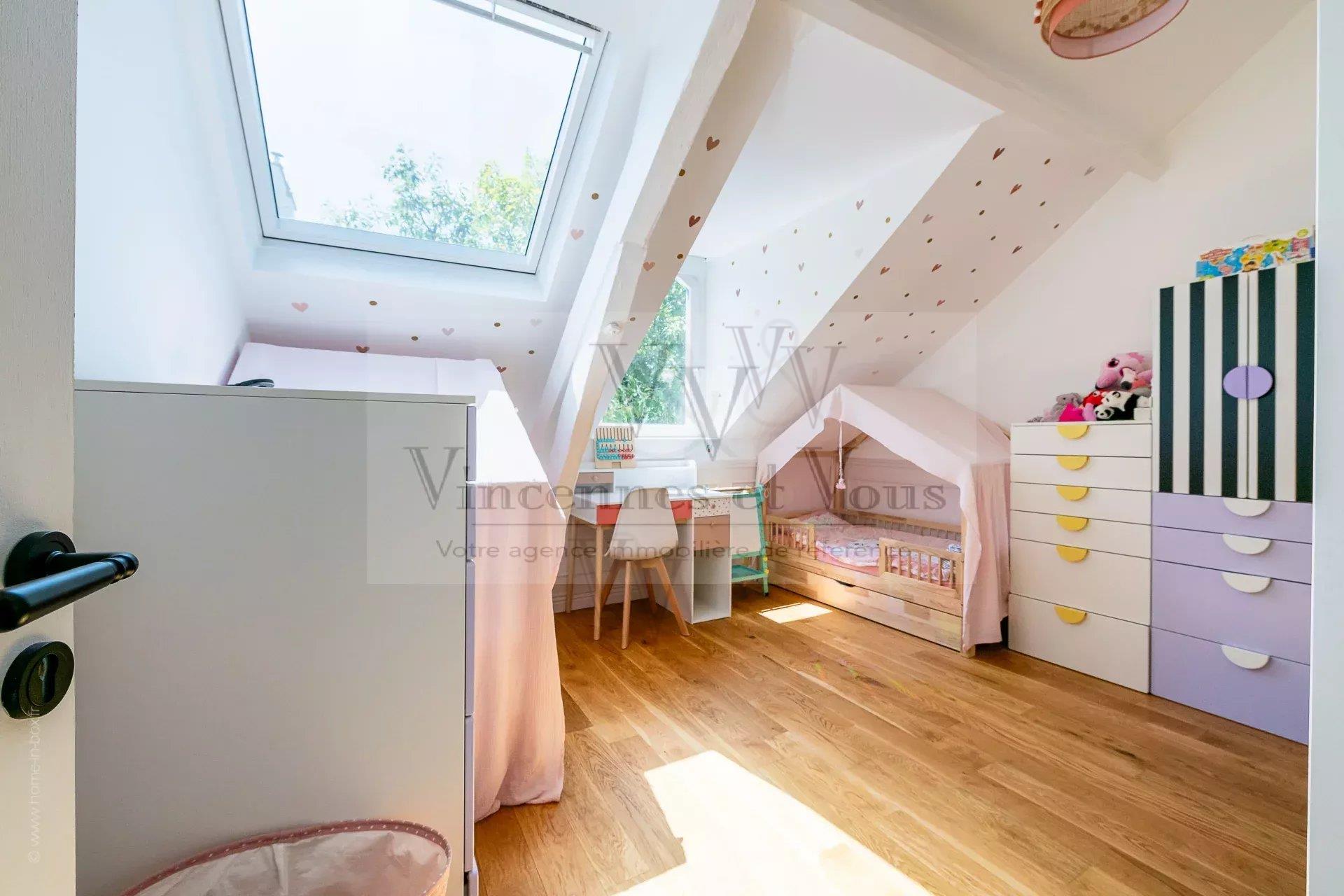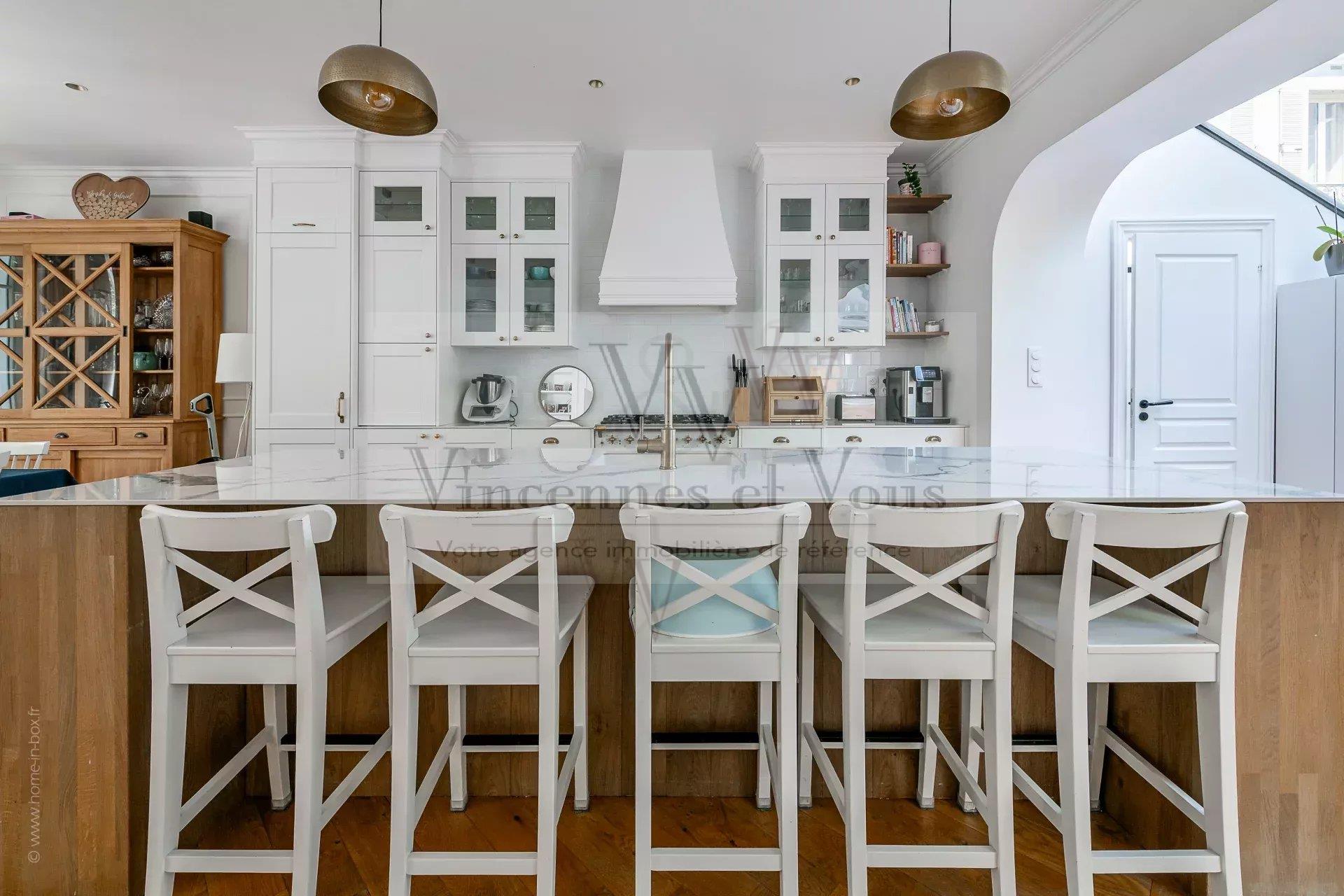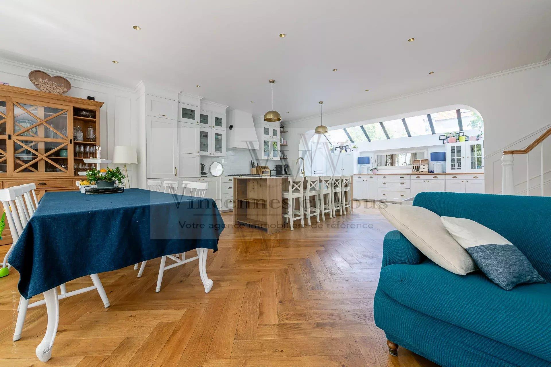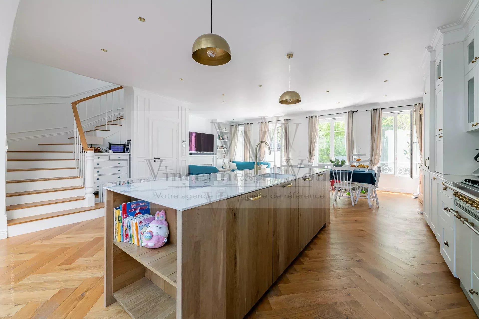 L'agence Vincennes et Vous vous propose en exclusivité - COUP DE CŒUR - CENTRE VILLE - Maison meublée de 150.32 m² et 5 chambres. Elle comprend : une entrée avec placard, cuisine équipée et aménagée ouverte sur une vaste pièce de vie exposée SUD en accès direct sur la terrasse, wc, A l'étage, une suite parentale avec dressing et salle de bains, une chambre, un bureau, une salle d'eau avec WC. Au deuxième étage : trois chambres, une salle de bains avec baignoire douche et WC. Sous-sol avec pièce de jeu, espace buanderie et rangement, Box et jardin à l'abri des regards, unique sur Vincennes. Disponible au 14 Août. Le chauffage et l'eau chaude sont en individuel avec pompe à chaleur. Dépôt de garantie : 14.000 euros. Montant des honoraires à la charge du locataire (Zone A bis) : 2.254.8 euros TTC dont 450.96 euros d'état des lieux d'entrée (3€/m²). Montant des honoraires à la charge du bailleur : 2.705.76 € TTC. DPE : classe énergie B dont classe climat : A. Montant estimé - abonnement compris - des dépenses annuelles d'énergie pour un usage standard, sur la base des prix moyens des énergies indexés au 01/01/2021 : entre 1100 €/an et 1540 €/an - Les informations sur les risques auxquels ce bien est exposé sont disponibles sur le site Géorisques : www.georisques.gouv.fr