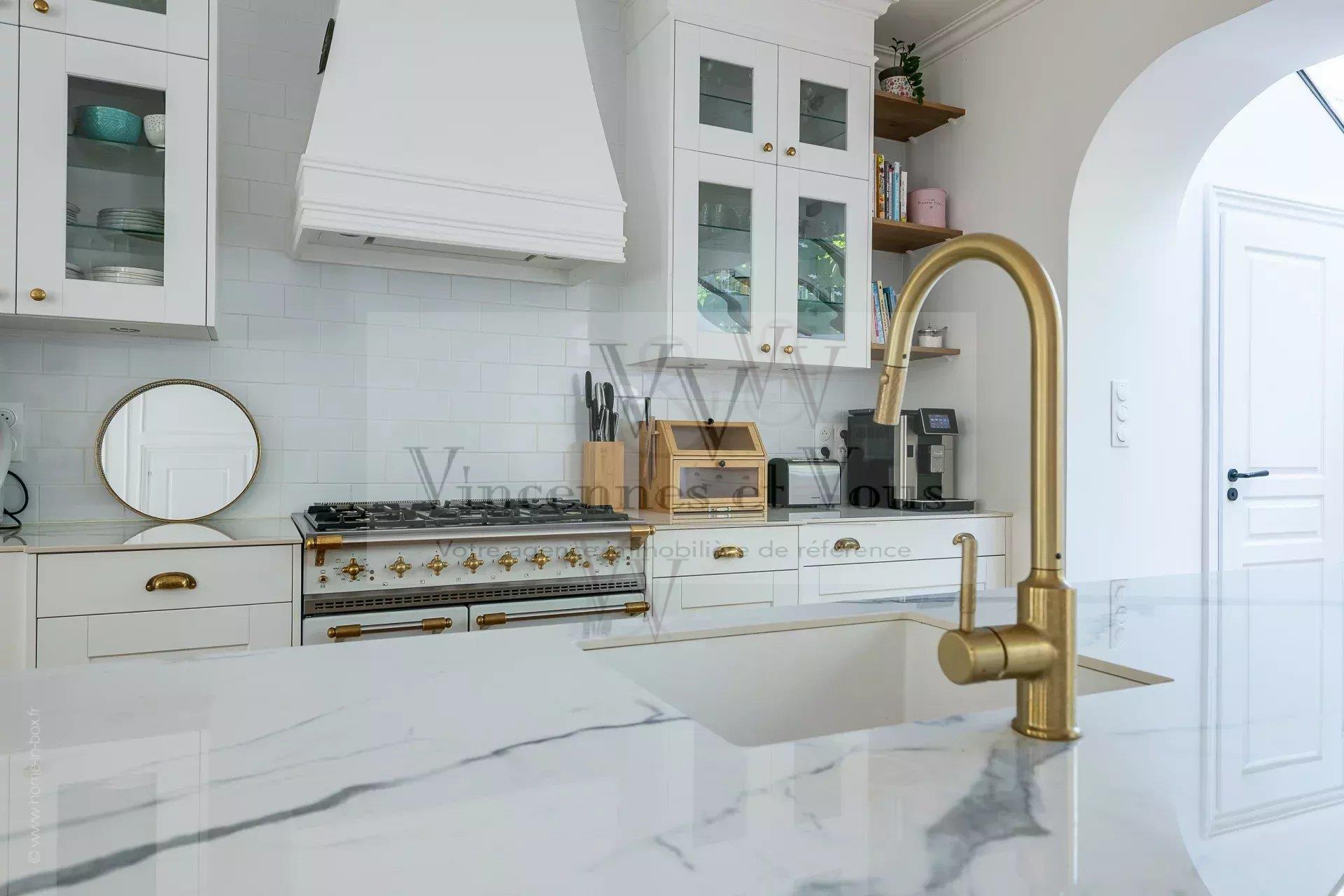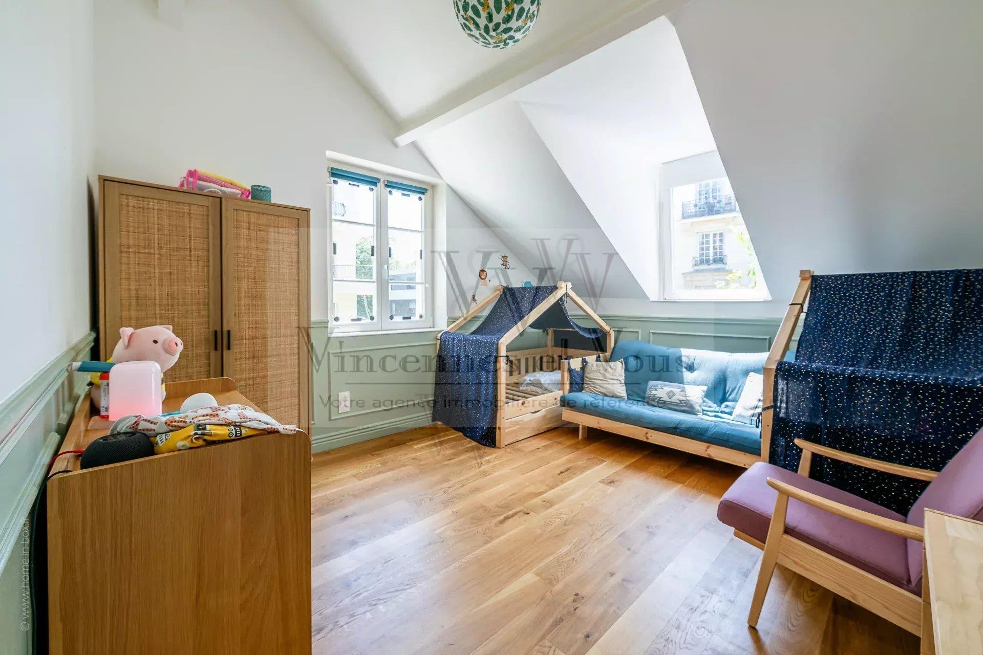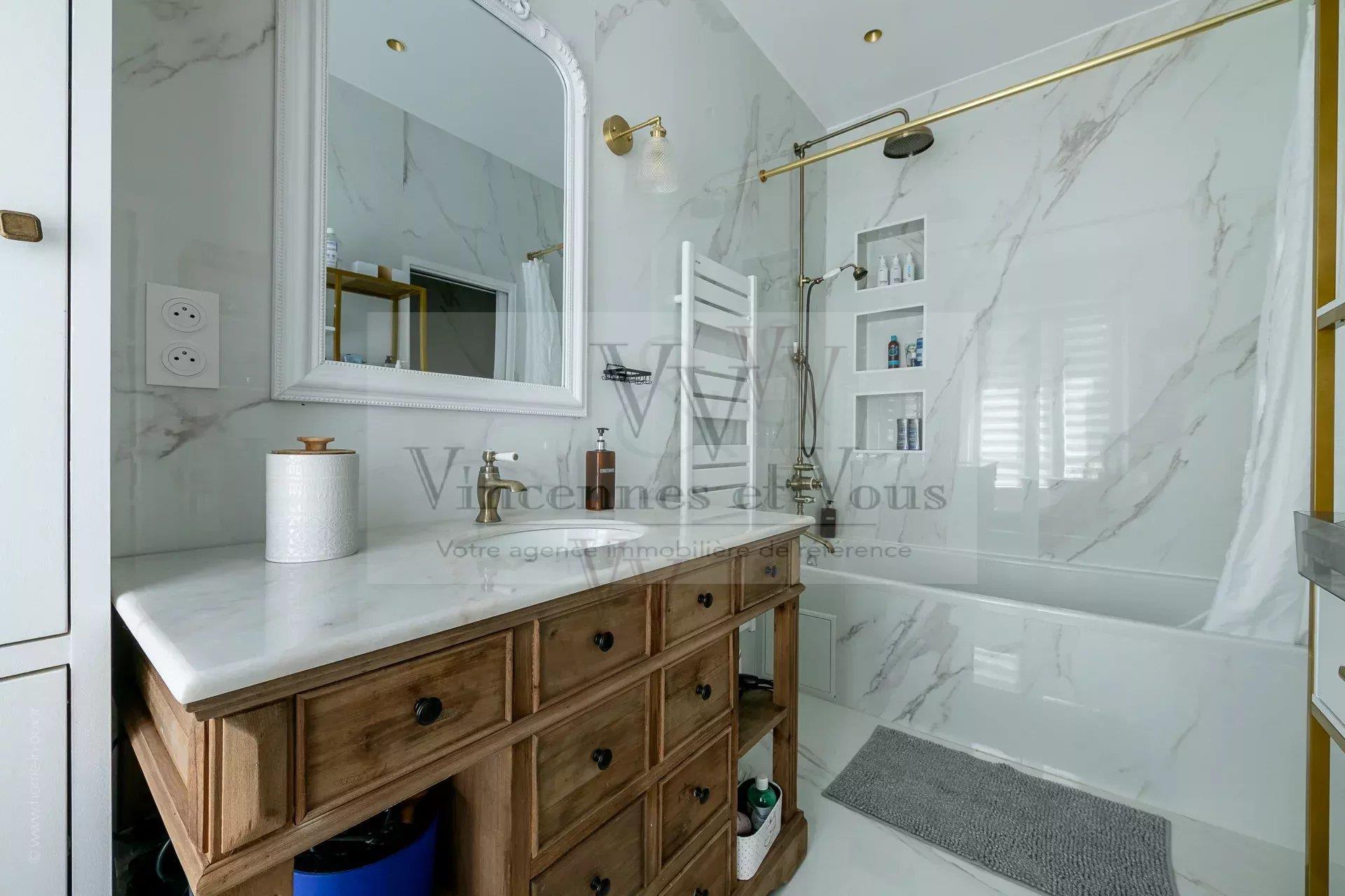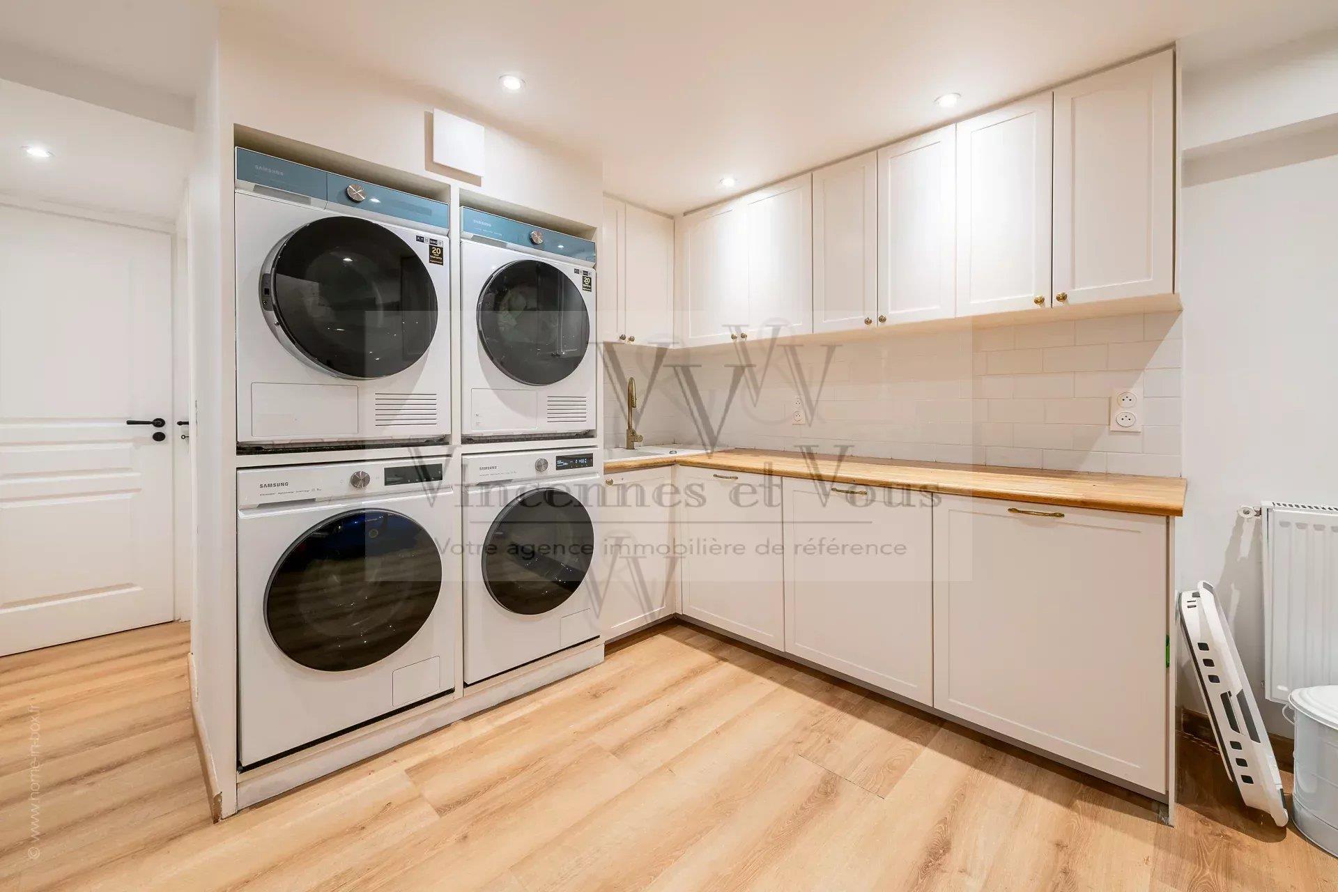 L'agence Vincennes et Vous vous propose en exclusivité - COUP DE CŒUR - CENTRE VILLE - Maison meublée de 150.32 m² et 5 chambres. Elle comprend : une entrée avec placard, cuisine équipée et aménagée ouverte sur une vaste pièce de vie exposée SUD en accès direct sur la terrasse, wc, A l'étage, une suite parentale avec dressing et salle de bains, une chambre, un bureau, une salle d'eau avec WC. Au deuxième étage : trois chambres, une salle de bains avec baignoire douche et WC. Sous-sol avec pièce de jeu, espace buanderie et rangement, Box et jardin à l'abri des regards, unique sur Vincennes. Disponible au 14 Août. Le chauffage et l'eau chaude sont en individuel avec pompe à chaleur. Dépôt de garantie : 14.000 euros. Montant des honoraires à la charge du locataire (Zone A bis) : 2.254.8 euros TTC dont 450.96 euros d'état des lieux d'entrée (3€/m²). Montant des honoraires à la charge du bailleur : 2.705.76 € TTC. DPE : classe énergie B dont classe climat : A. Montant estimé - abonnement compris - des dépenses annuelles d'énergie pour un usage standard, sur la base des prix moyens des énergies indexés au 01/01/2021 : entre 1100 €/an et 1540 €/an - Les informations sur les risques auxquels ce bien est exposé sont disponibles sur le site Géorisques : www.georisques.gouv.fr